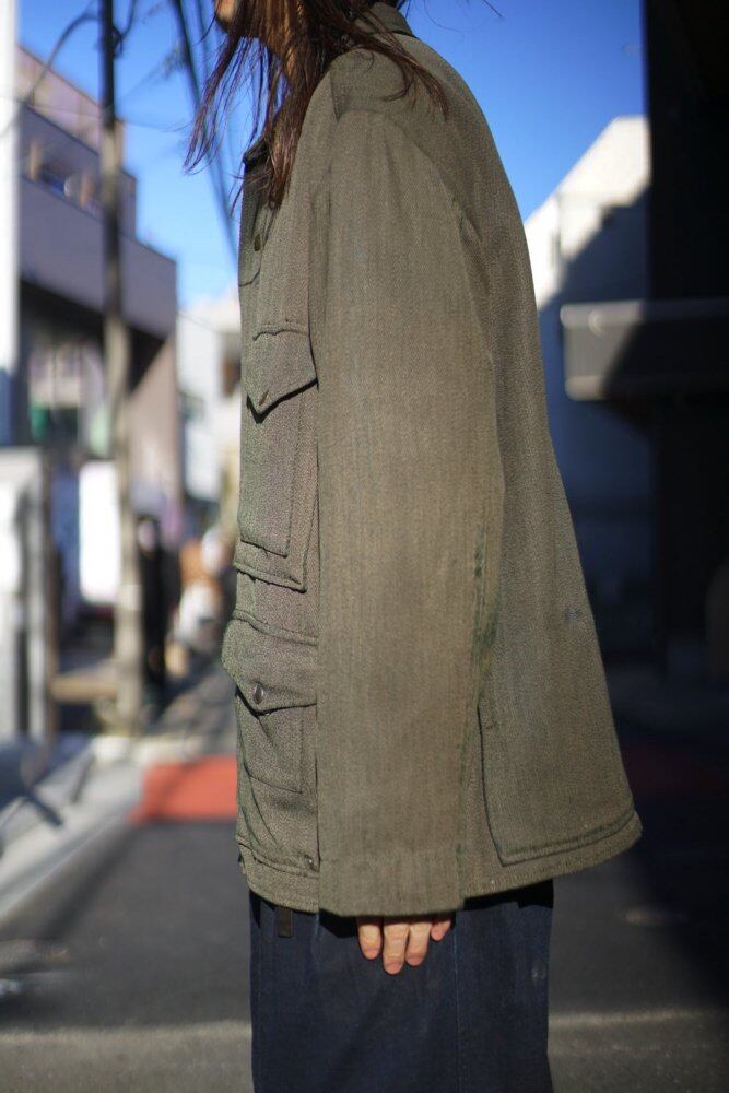 1960s Whipcord Cruiser Jacket.<BR> The rayon-based whipped cord fabric has a soft, flowing drape, and the solid weight, rugged texture of the thick ridges, and the aging that comes with age that is unique to vintage items exude a strong presence.