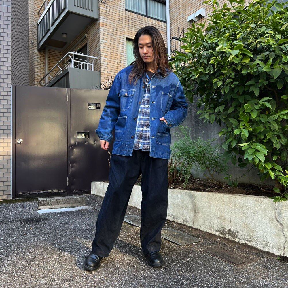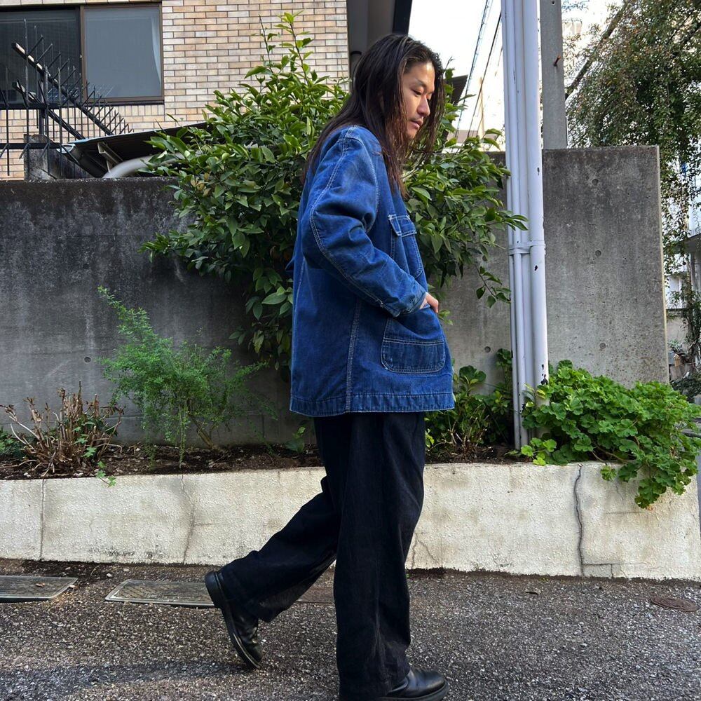 This Montgomery Ward coverall jacket from the 1970s has a beautiful indigo blue color and a roomy fit that is not too large. It has a great silhouette and a blanket lining for extra warmth.