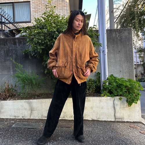 This suede jacket is made in Italy in the 90s. It has a light and smooth texture like deerskin, and is very soft and comfortable to wear. It is a perfect piece to wear in the spring. It is an oversized suede jacket that you can wear loosely.