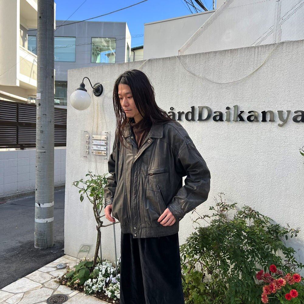 This 80s leather jacket has a thin and light leather texture that makes it perfect for wearing in the spring. The faded black color has a nice charcoal-like color and a good silhouette. It has a moderately loose fit.
