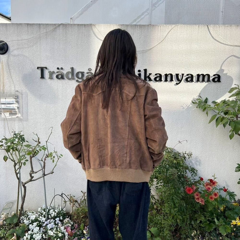 A suede jacket from the 1980s. The round-neck knit and elegant smoky brown suede jacket design make it a vintage European item. It is lightweight and comfortable to wear, making it a great leather item for spring.